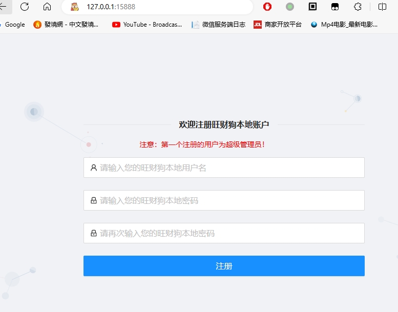 因为是第一次使用,需要注册一个超级管理员的账户后,登录即可: