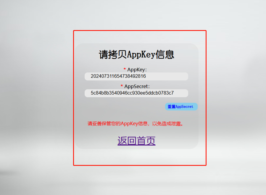把看到的AppKey信息和AppSecret信息拷贝到记事本备用