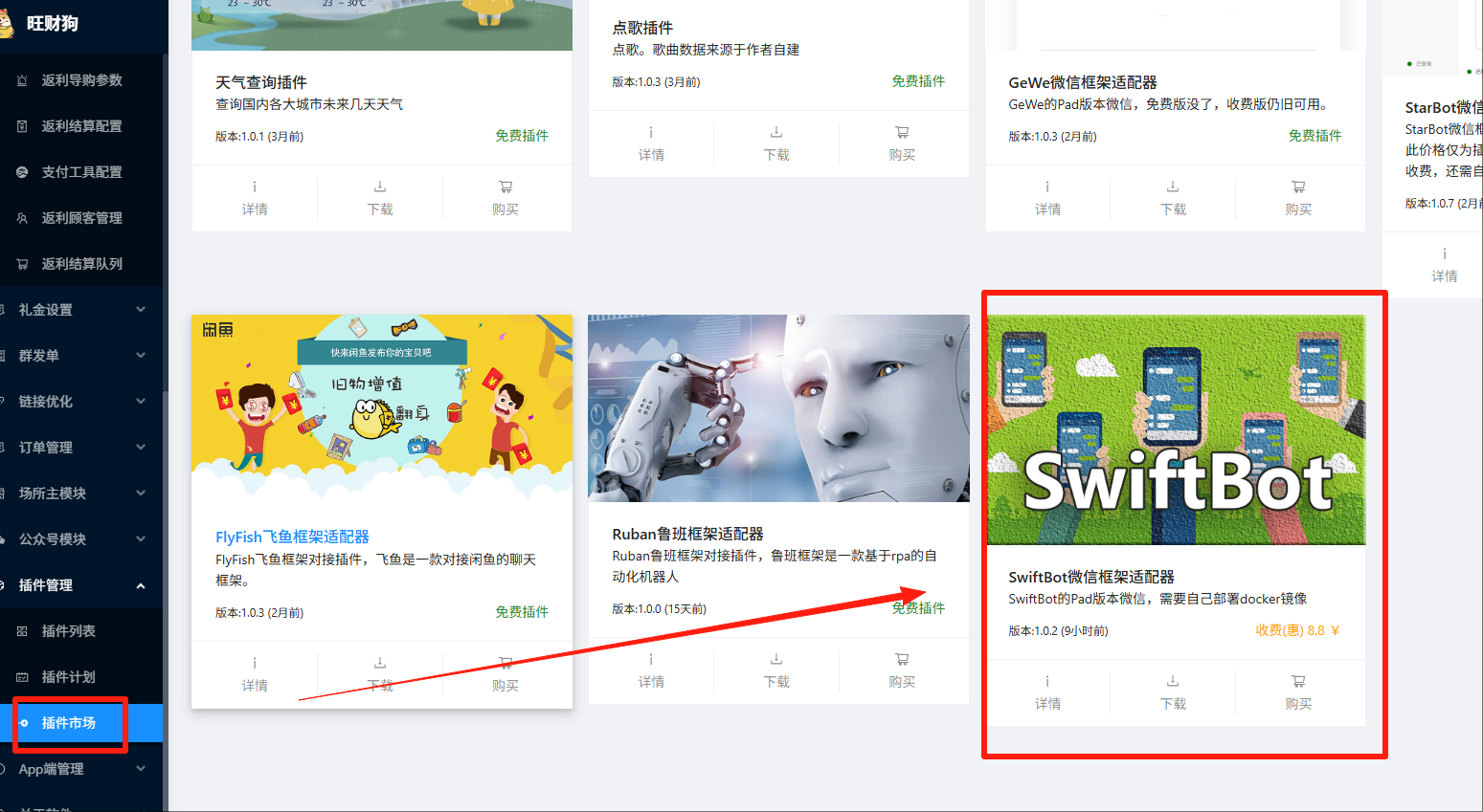 如何获取?=》旺财狗的“插件管理”-“插件市场”