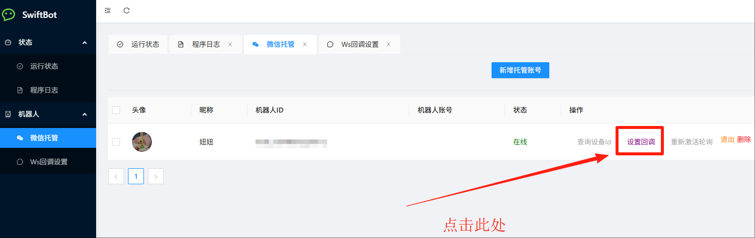 6.将生成的回调地址输入到机器人框架