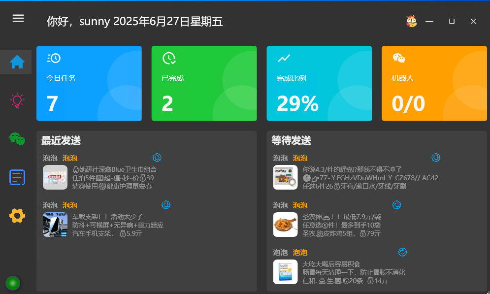 鲁班自动化是一款基于微软UIAutomation自动化的机器人框架。 它可以自动发单(私发、群发),发圈(图片、文字、留言),因为不侵入其他程序,安全性较高。 它只能主动发送,不能接收消息,所以只能用于发单发圈。不能用于交互机器人。