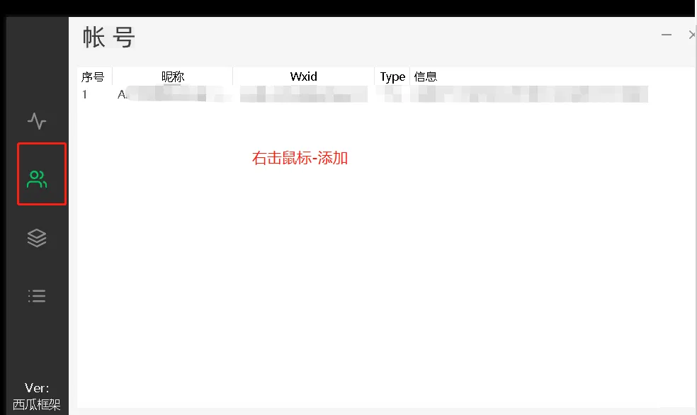 西瓜框架如何登陆微信。下图右击,添加账号。