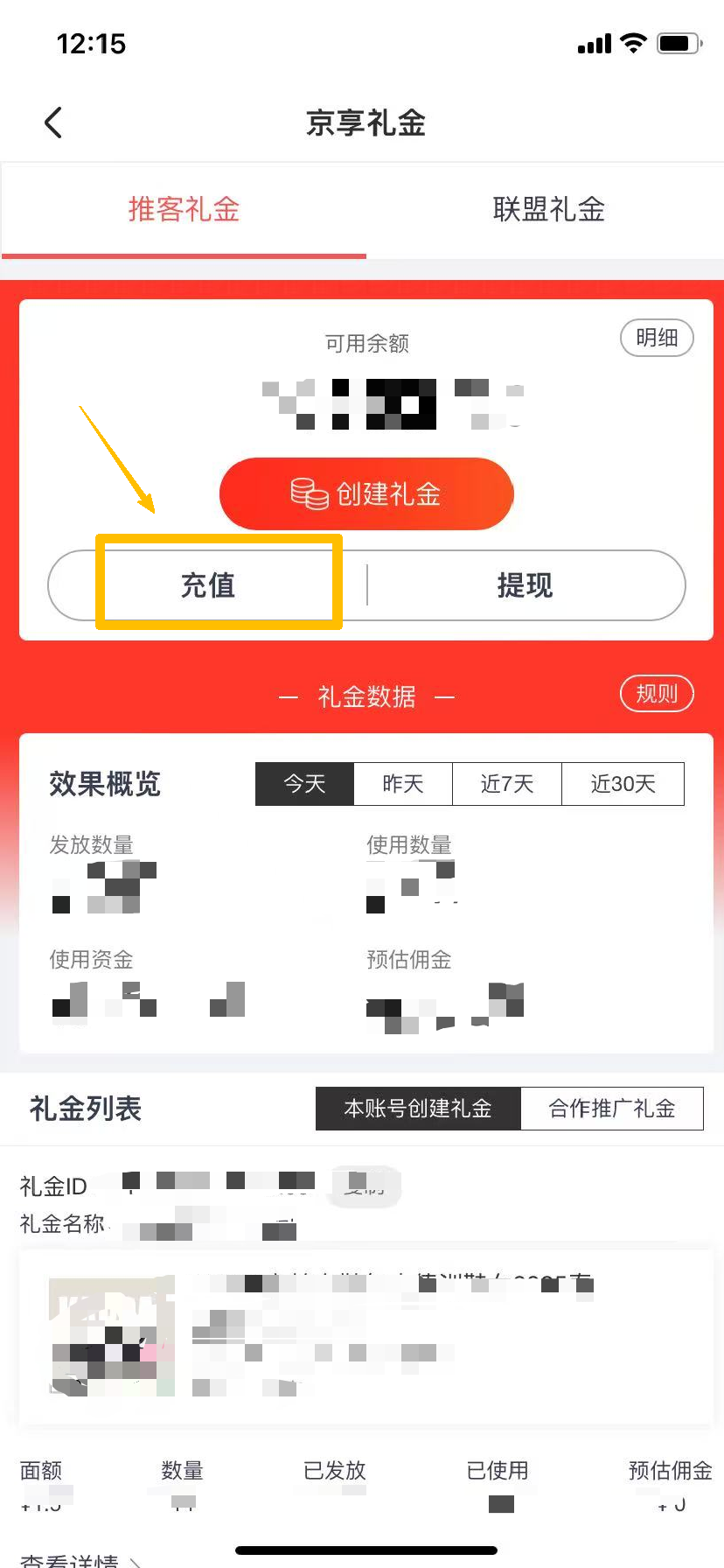 打开京粉app-“我”-“京享礼金”-“充值”,即可!