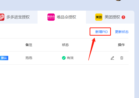 根据提示进行授权,并添加进来自己创建的推广位,如图: